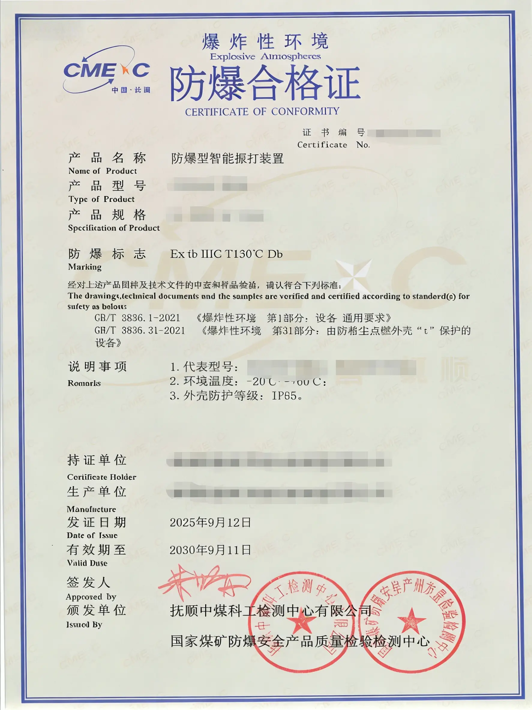 此类产品认证需同时关注消防产品标准和防爆标准: