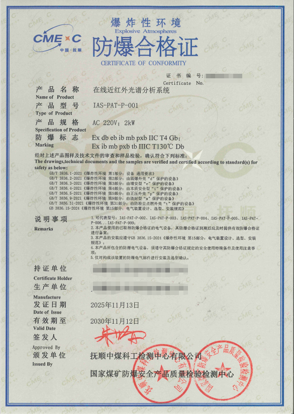 在线近红外(NIR)分析仪作为一种高效的过程分析工具,已广泛应用于石化、制药、化工等行业的反应过程监测与质量控制。这些场所往往存在易燃易爆气体或粉尘,而分析仪内部包含光源、电路、探测器等电气部件,存在潜在的点燃风险。因此,为在线NIR分析仪办理防爆合格证,是其安全部署于危险区域的必要前提,也是企业合规生产的关键环节。